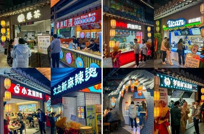 與復(fù)古宋朝市井生活場景形成有趣反差的是,這里大膽引入眾多特色創(chuàng)新品牌,豐富了商業(yè)項(xiàng)目的就餐選擇和體驗(yàn),包括湖南擂辣椒飯【擂飯】、【小木屋拌飯】、【港町灣關(guān)東煮】、河南本土gelato冰激凌【極拉圖】、新式飲品【椰不二】、回轉(zhuǎn)小火鍋品牌【串士多】、成都知名小吃【芙蓉巷】、【大吉利潮汕牛肉火鍋】……一舉成為鄭州頂流覓食、社交地。