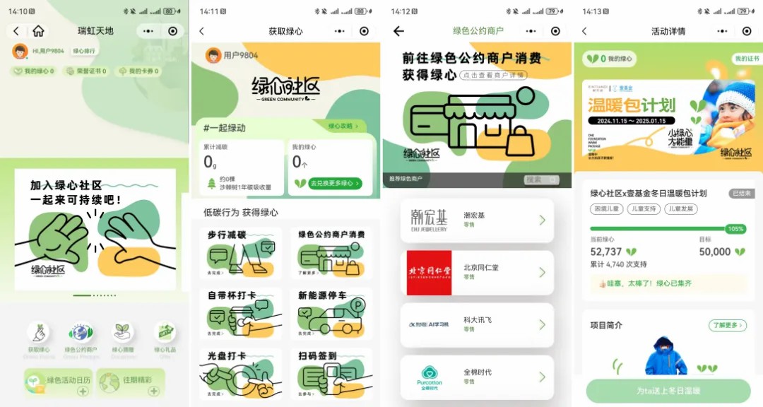 再比如,上海新天地開發(fā)上線了消費者“綠心”會員碳賬戶,在線下結(jié)合綠色餐廳大賞活動,推廣有機低碳的餐飲經(jīng)營。“綠心社區(qū)”的上線為商業(yè)與消費者之間搭建了一條綠色的通道,令可持續(xù)行為可積累、可觸達(dá)、可量化、可兌換,培養(yǎng)消費者從意識、認(rèn)知到生活方式邁向綠色的轉(zhuǎn)變。